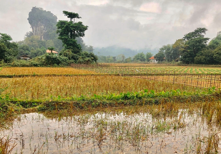 The paddies are ingenious in design. Small mud dams hold the water back and flood the crops. Controlled openings regulate the flow of water from paddy to paddy, allowing maximum use of a given amount of water.